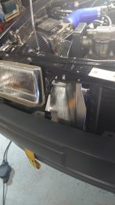 Bei einem Gespräch kam die frage auf hier müsste noch ne Abdeckung hin und die Luftführung könnte auch mal besser gelöst werden. Ob mir da ne Lösung einfiele !? Klar Dünnes Aluminiumblech in Form gebracht und wo nötig verschweißt sieht sauber aus und Hält.